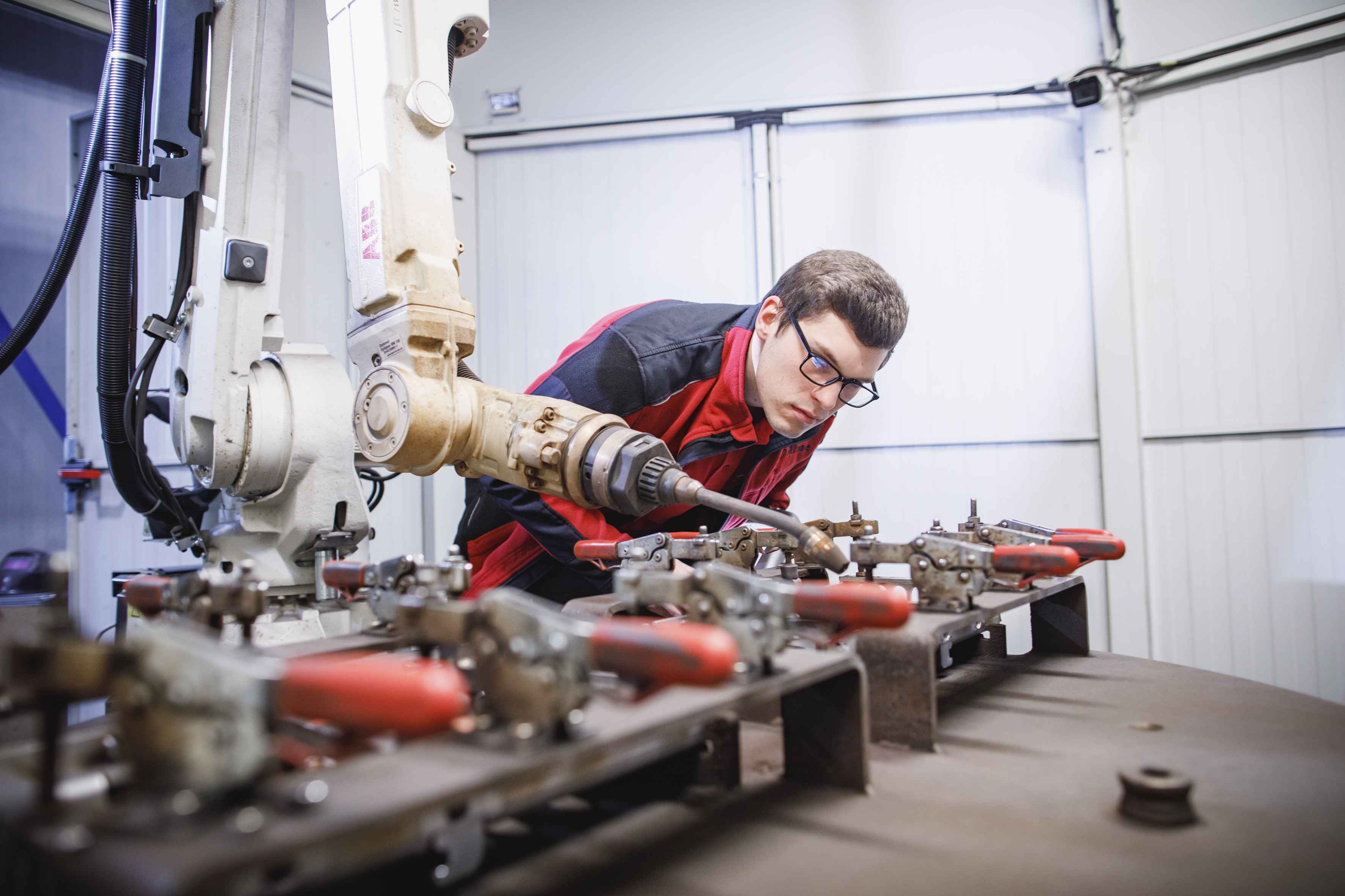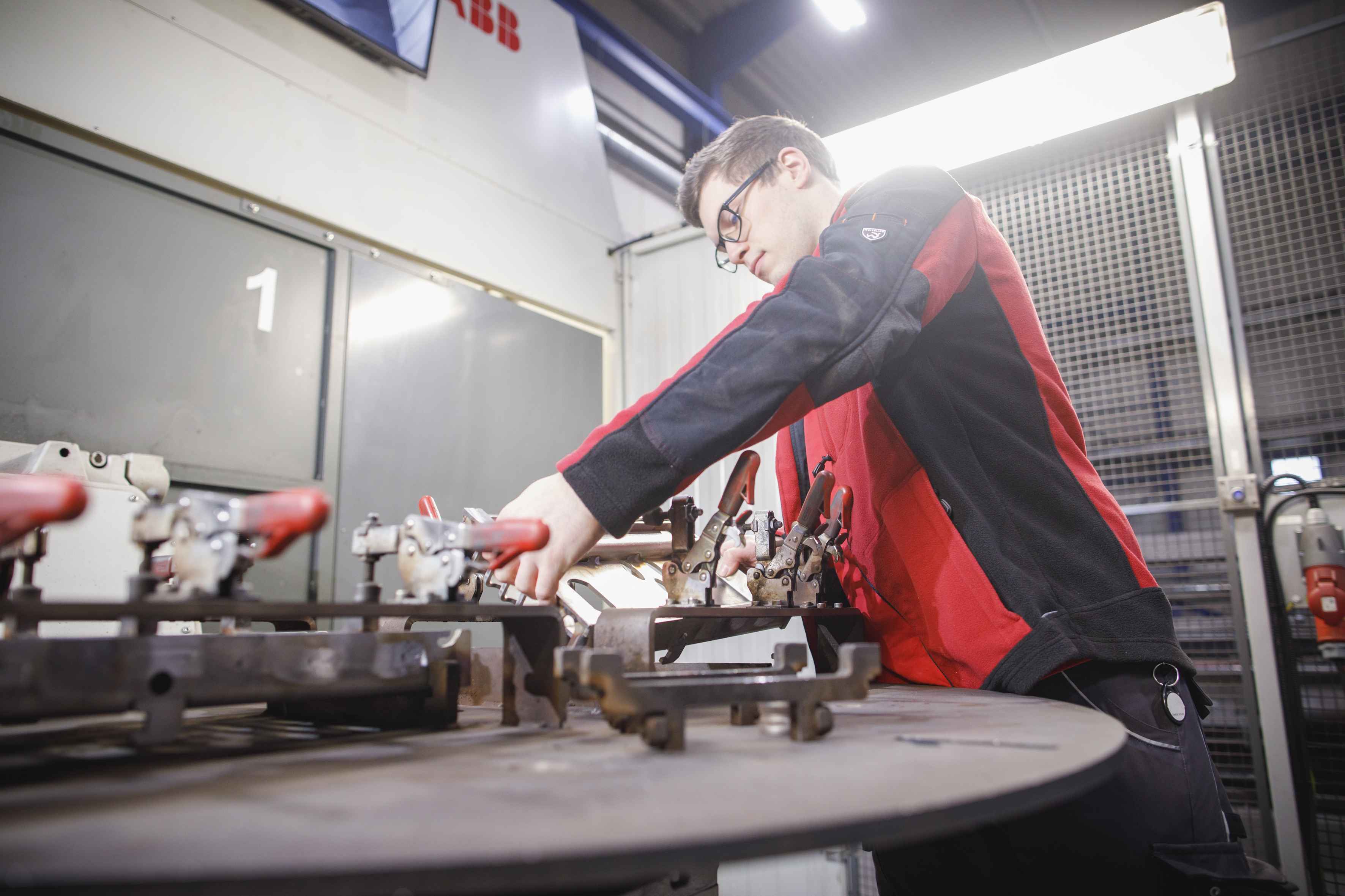Der gesamte Prozess wird von qualifizierten Fachkräften vorbereitet, programmiert und überwacht. In der sogenannten Bauteilprogrammierung wird festgelegt, welche Schweißbahnen und Bewegungen der Roboter ausführen soll. Während der Produktion achtet der Bediener darauf, dass alle Nähte fachgerecht und prozesssicher umgesetzt werden.
